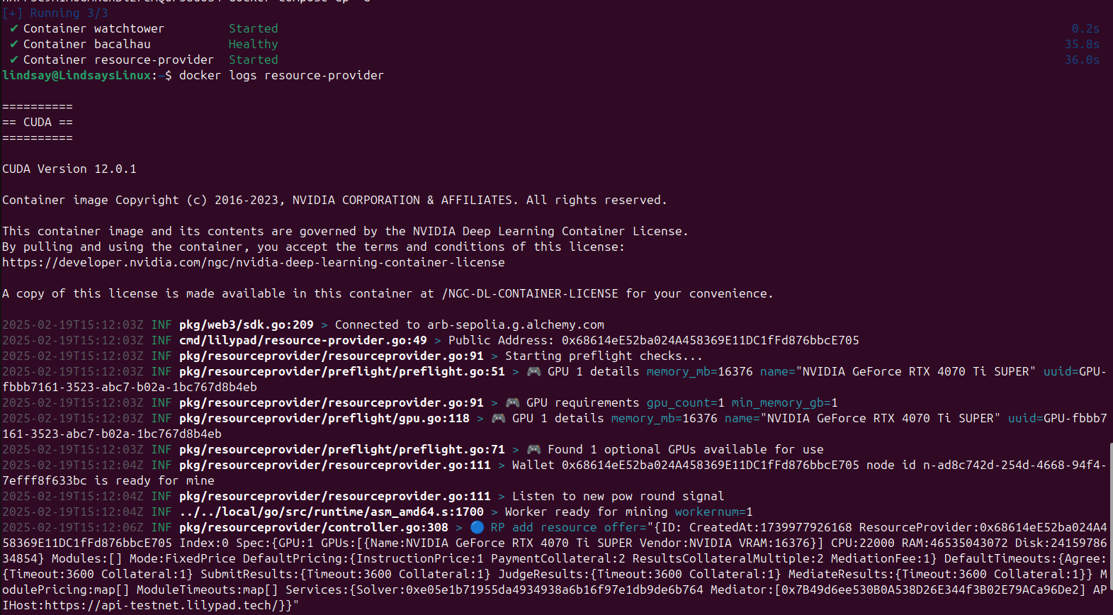 * If the Lilypad install for Linux was previously used on the RP, first [remove](https://docs.lilypad.tech/lilypad/resource-providers/update-node#ensure-all-processes-from-linux-install-are-stopped-and-removed)[ the install](https://docs.lilypad.tech/lilypad/resource-providers/update-node#ensure-all-processes-from-linux-install-are-stopped-and-removed). Then follow the [install instructions](https://docs.lilypad.tech/lilypad/resource-providers/update-node#install-and-run-a-new-version-of-lilypad).